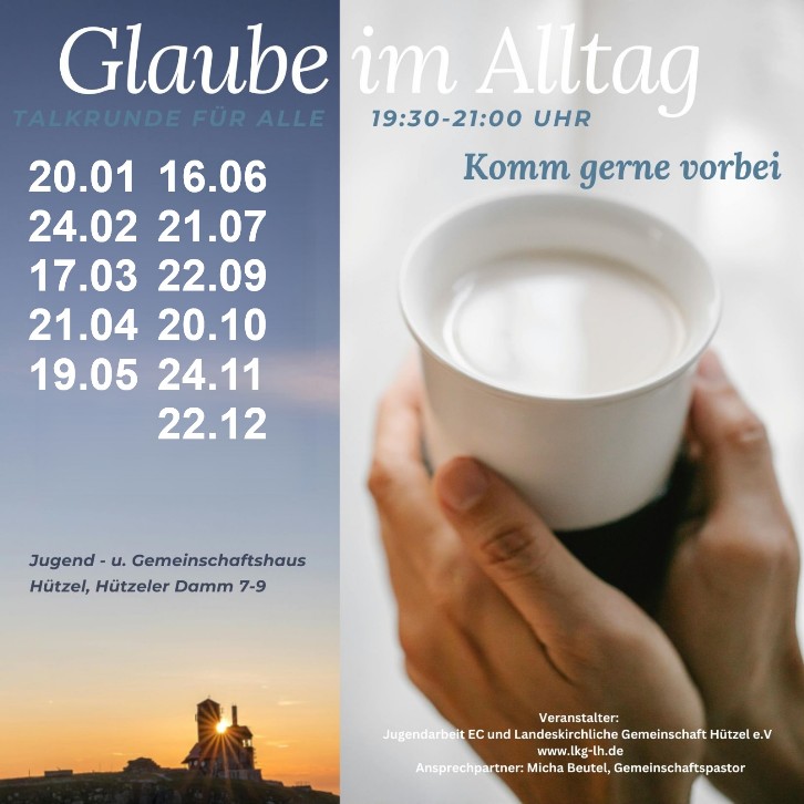 Christlicher Glaube, Gemeinschaft, Gebet, Spiel und Spaß für alle Altersgruppen in Hützel, Kirchgellersen und Lüneburg. Wir freuen uns über Ihren Besuch.